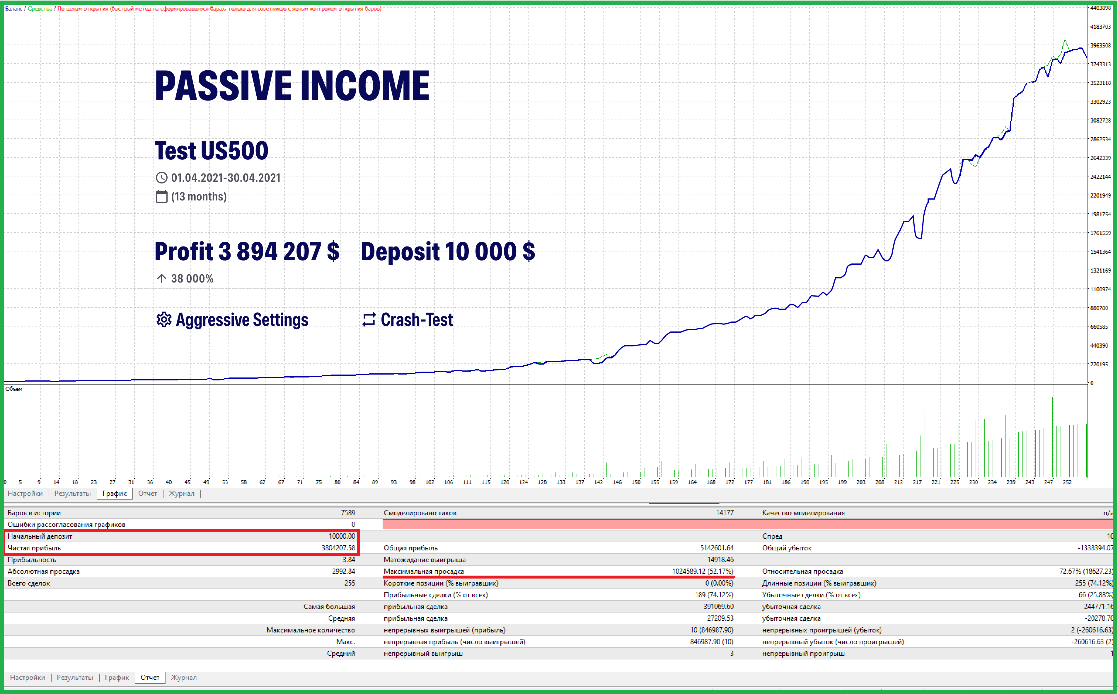 If an asset begins to hang around in the price corridor, then the expert uses flat strategies to collect small price movements, while a simply purchased asset without an expert does not bring profit in such a situation.